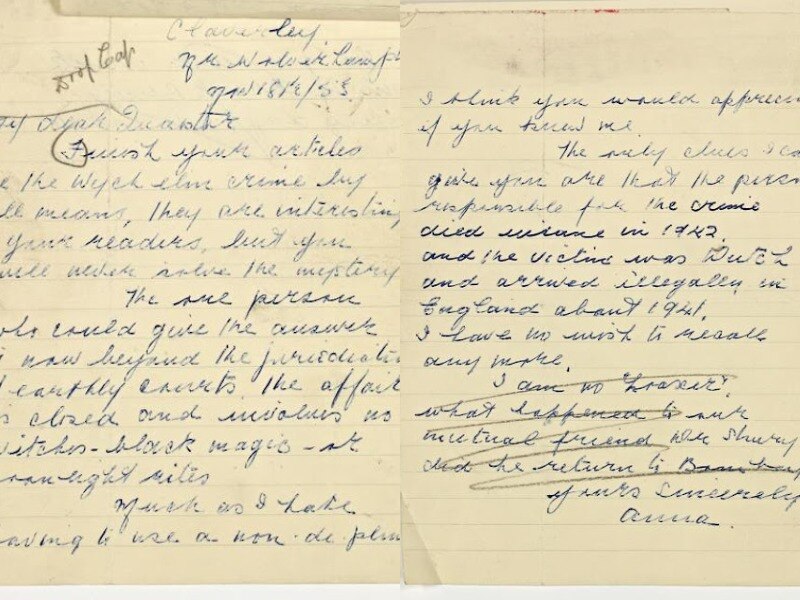 "The only clues I can give you are that the person responsible for the crime died insane in 1942 and the victim was Dutch and arrived illegally in England about 1941. I have no wish to recall any more," she went on to write.