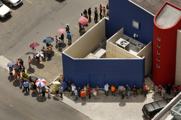 Tree-removal crews drove around the city. Soldiers directed traffic along a closed highway. Hungry neighbors packed an Isla Verde pizza parlor.