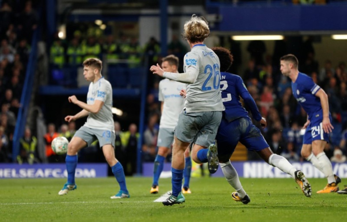 A low shot from Willian which flew in off the post in stoppage-time doubled the advantage for Antonio Conte's team, although Everton forward Dominic Calvert-Lewin swiftly responded with a good finish to give the Merseyside club a consolation.