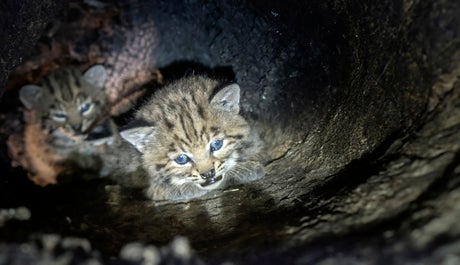 Biologists studying Southern California bobcats found a mother and three kittens this spring in an unusual den in a cavity up in a tree in an area intensely burned by a huge 2018 wildfire west of Los Angeles the National Park Service said.