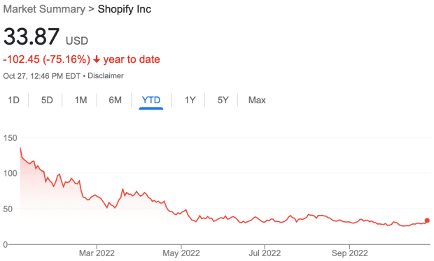 However, in 2022, companies that aren’t putting up a profit have been big targets for stock sellers as economic weakness and record-high inflation takes its toll on the market. As a result, shares of Shopify are down roughly 75% year-to-date.