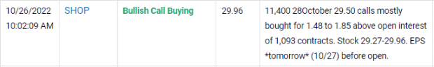 That’s why it piqued our interest when we saw a massive amount of bullish buying in weekly (SHOP) call options just one day before earnings.