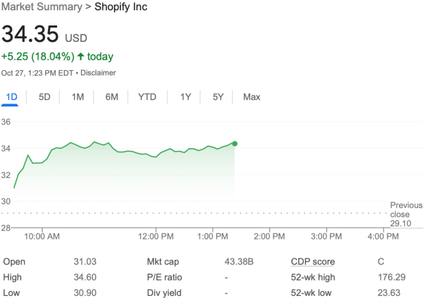 This was all shareholders needed to hear — Shopify shares took off like a rocket, surpassing the overall move of all four prior quarters.
