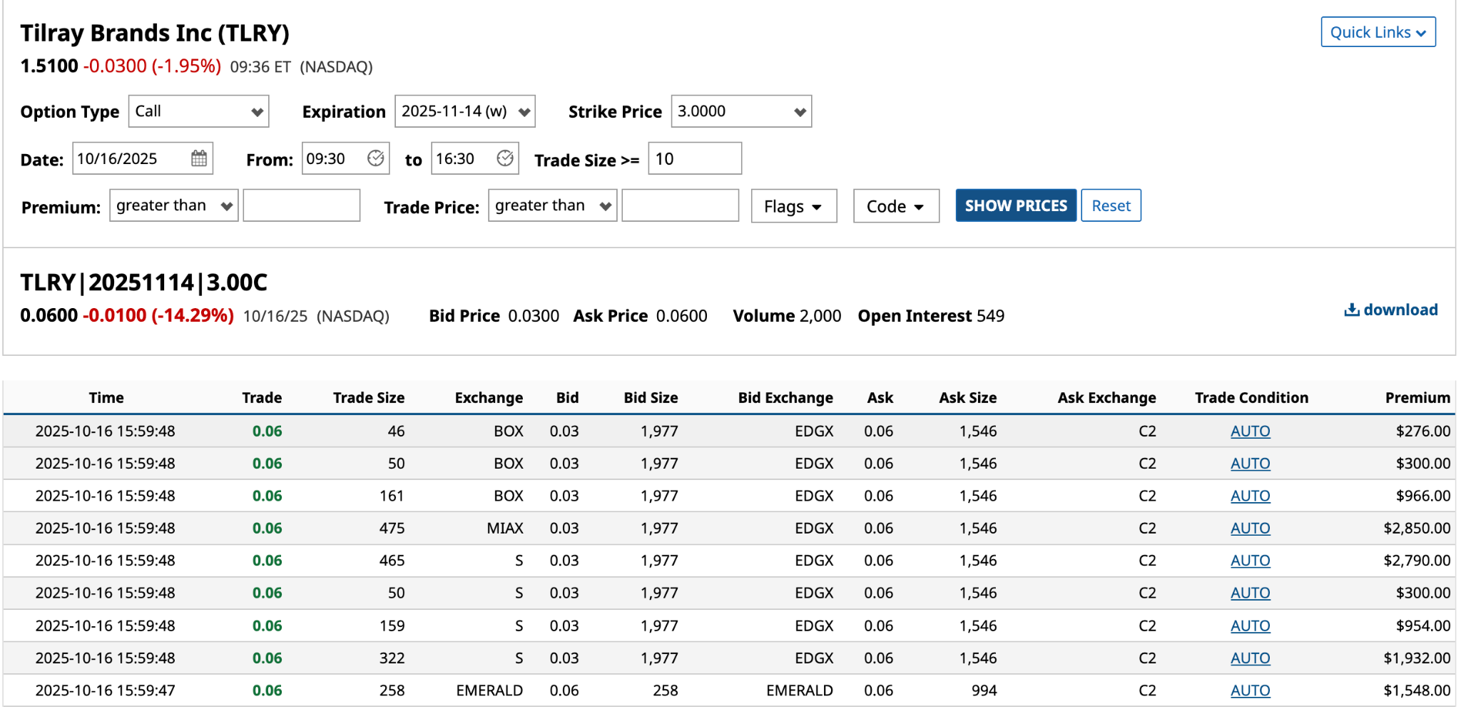 When the premiums are in the millions, you’re looking at bigger fish. Furthermore, the price was right. All of these 10+ trades were for $0.06, just 3.96% of the $1.51 share price.