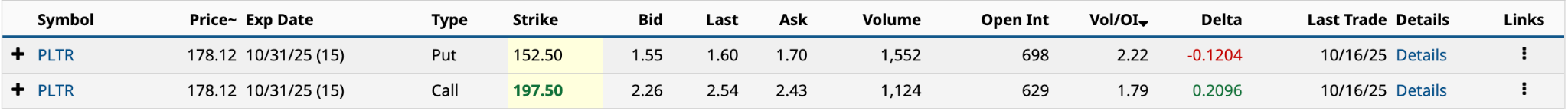The net debit is $4.13, or a low 2.3% of Palantir’s closing price of $178.12 from Thursday. The upper break-even is $201.63 [$197.50 strike price + $4.13 net debit], while $148.37 [$152.50 strike price - $4.13 net debit] is the lower break-even.