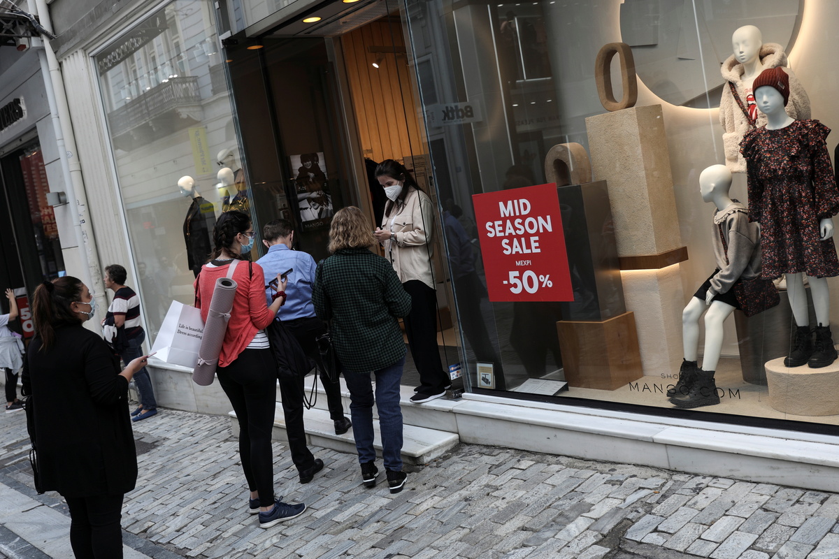 Queues formed outside shops in Athens on Saturday on the first day of new restrictions to curb soaring coronavirus infections which require the unvaccinated to have negative COVID-19 tests.