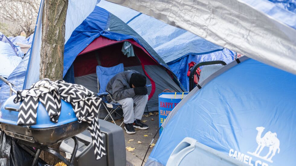 Piñero’s tent looks directly onto a Target, where he imagines he could buy a heater for his tent potentially, but he said he wouldn’t have the power anyway.