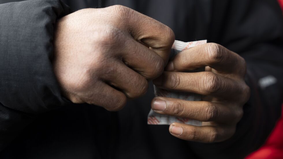 “Just in case,” the 40-year-old said as he picked up a carton full of frigid-looking hotdogs, “sometimes they don’t come with food,” referring to volunteers who provide meals.