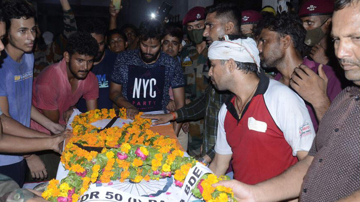 AGRA: The body of 45-year-old Army subedar, Shyamveer Singh, who died of a heart attack early on Wednesday in Ladakh, arrived in his native village Malupur in Agra in UP on Thursday evening.