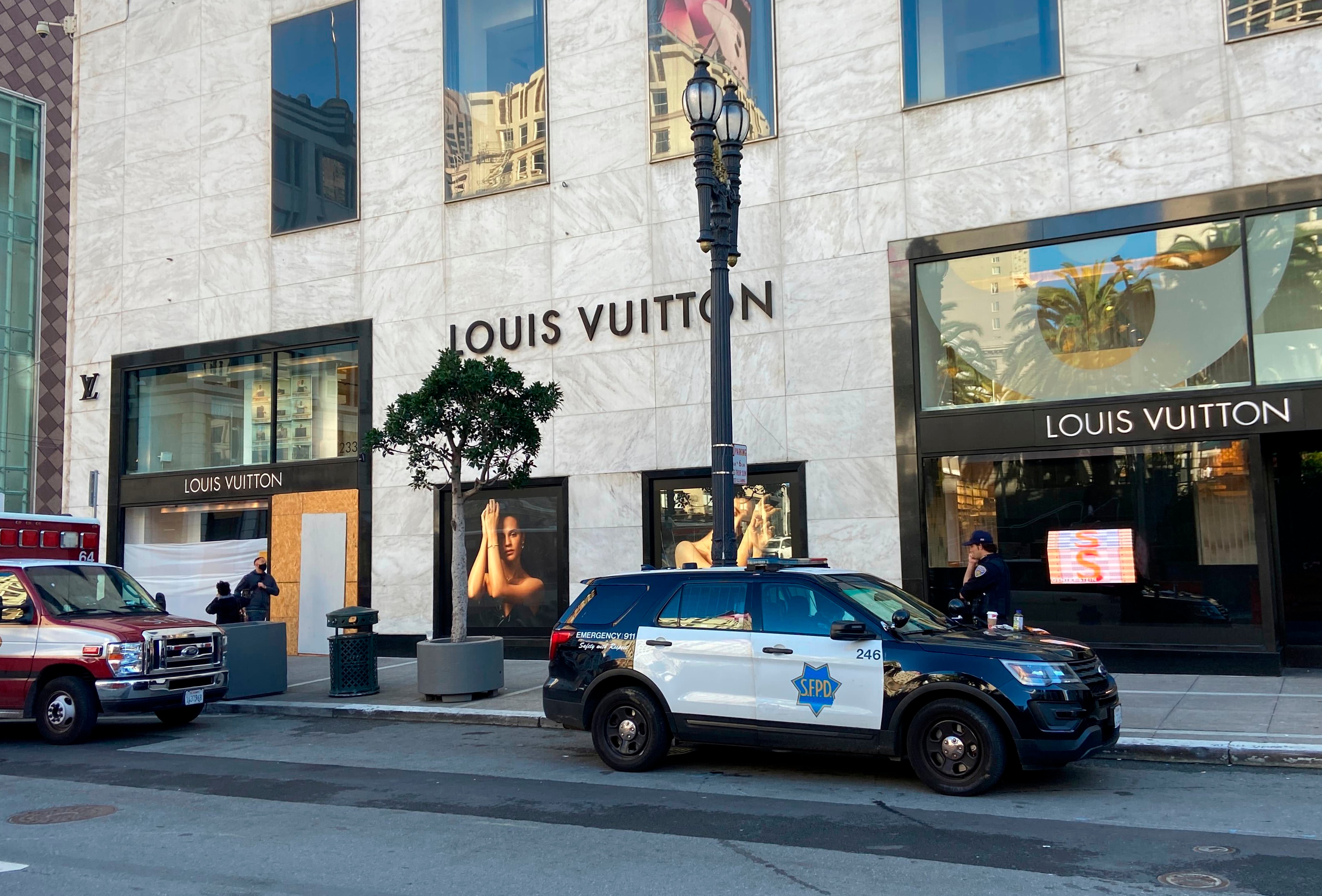 San Francisco police officer Robert Rueca said in a statement posted on social media that officers responded to reports of possible looting and vandalism at Union Square stores Friday night and arrested several people.