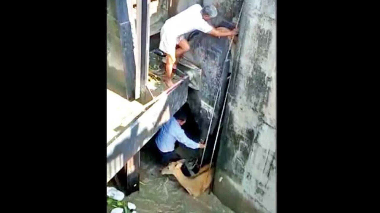 Seeing his colleague, Mohan Lal Yadav, 59, struggling to save the mammal, Gayoor Khan, a forest department gardener, too, jumped in to help the former and after a short while, they were able to rescue the deer.