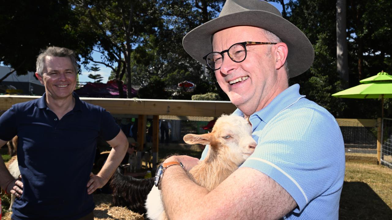 Baby animals and Vegemite jars couldn't escape the clutches of Anthony Albanese and Peter Dutton as the pair hit the hustings at Sydney's Royal Easter Show.