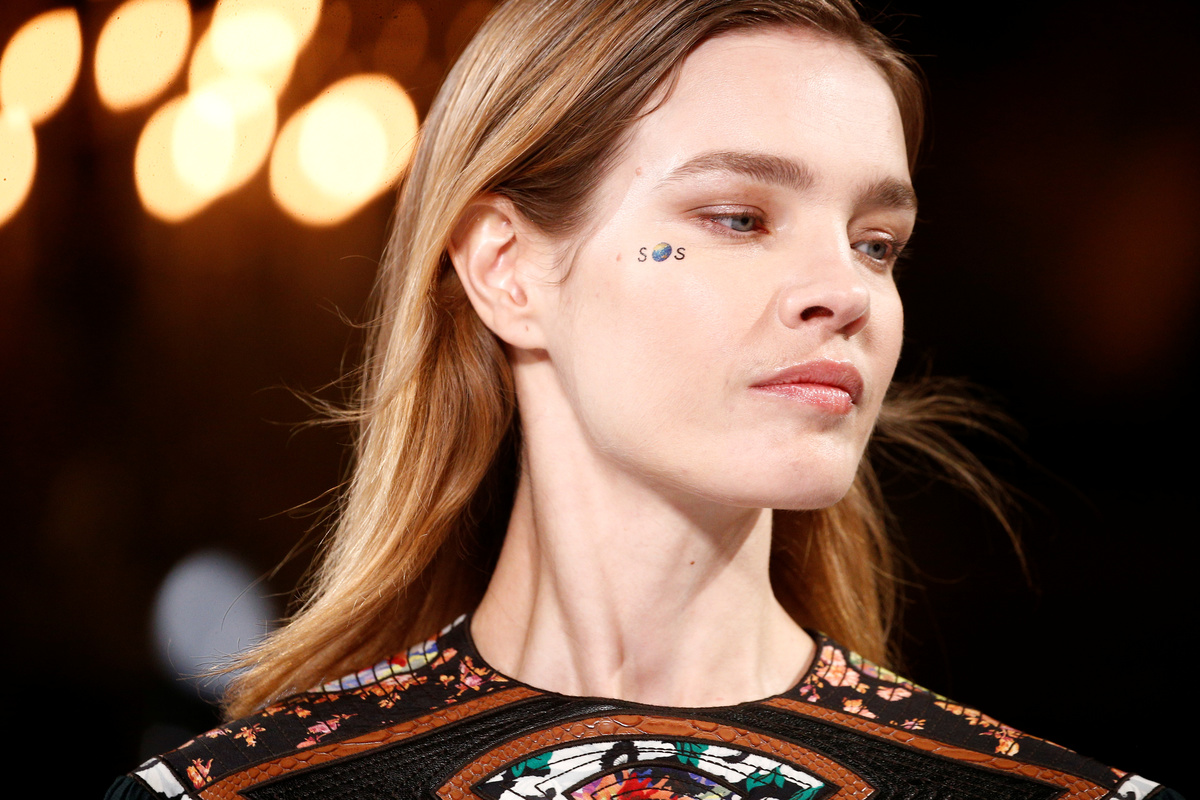 Others wore burgundy-brown faux-fur coats and were tattooed for the occasion with statements such as "There is no planet B" and "Earth day every day".
