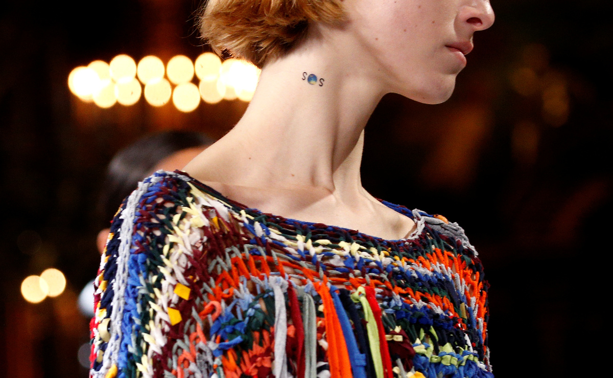 The autumn/winter 2019-2020 collection, described in show notes "as a contrast of strength and softness", featured dresses made of old T-shirts that were stripped and knotted together.