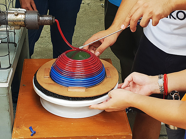 What we're trying to do at the moment is to find people and demonstrate them the technology. We visit events like Bangkok Design Week, Wonderfruit and schools to hold workshops. By showing the benefits of this technology and what it's capable of, hopefully we will inform and inspire people, and create that spark in their minds -- that plastic recycling can be easy, fun, cheap and beneficial for the community.