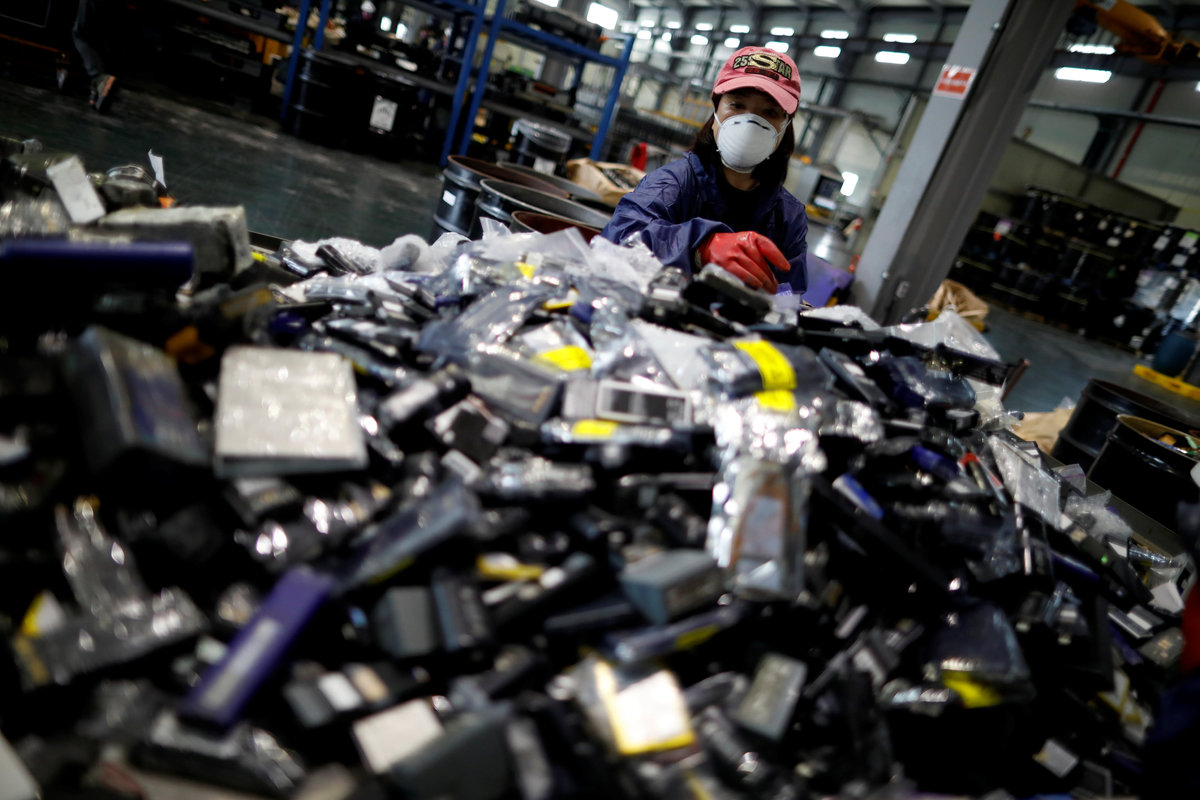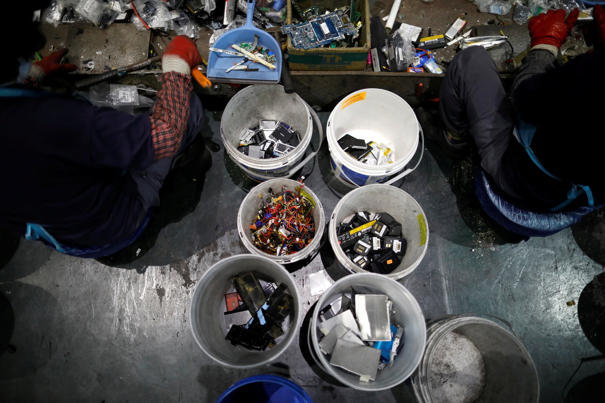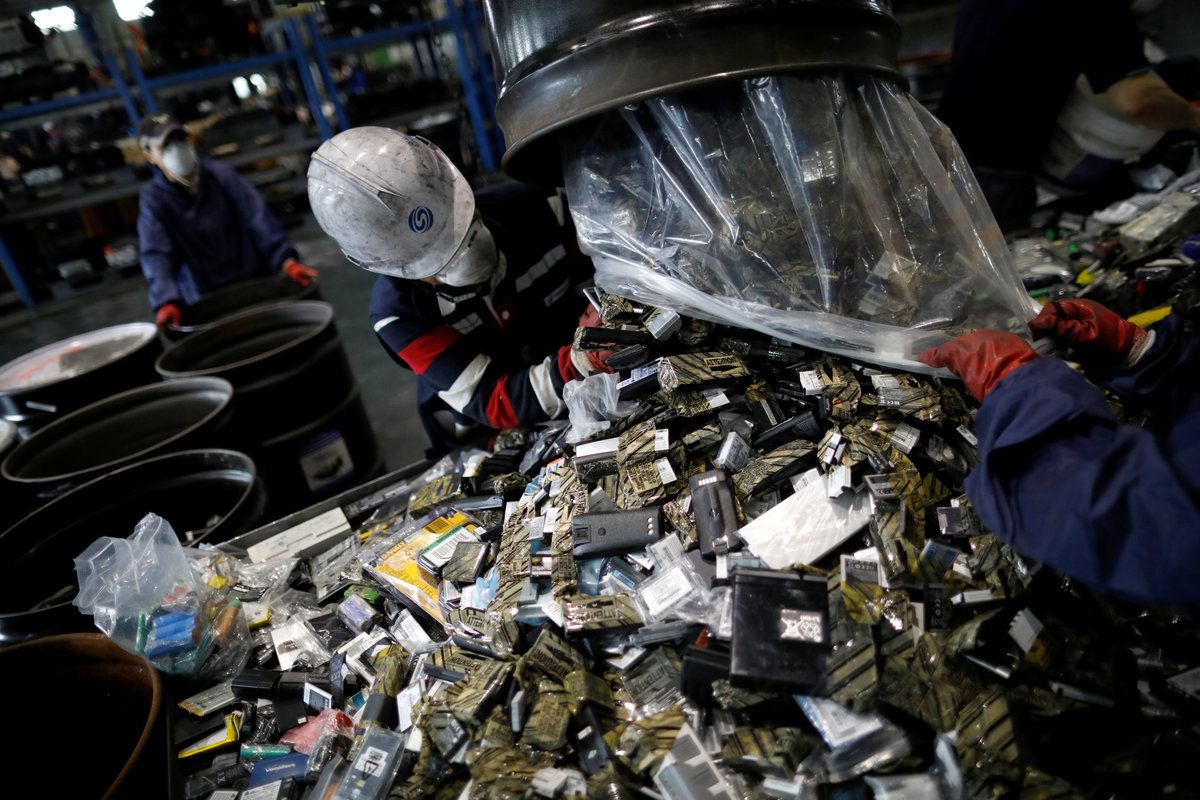 But they're not digging in the ground or refining ore. Instead, they are sorting through a pile of lithium-ion batteries from old mobile phones and laptops.