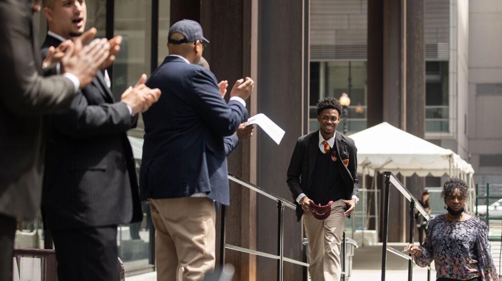 “Every day is a particularly difficult day for them in the city of Chicago. It is a tough environment for our students to grow up in. So it is a success for these guys to even show up to school. Add on to that a pandemic that we’ve had to endure and deal with, and you realize that this type of achievement — 100% college acceptance for the seniors — means even more,” said Tim King, founder and CEO of Urban Prep Academies, which has campuses downtown, in Englewood and in Bronzeville.