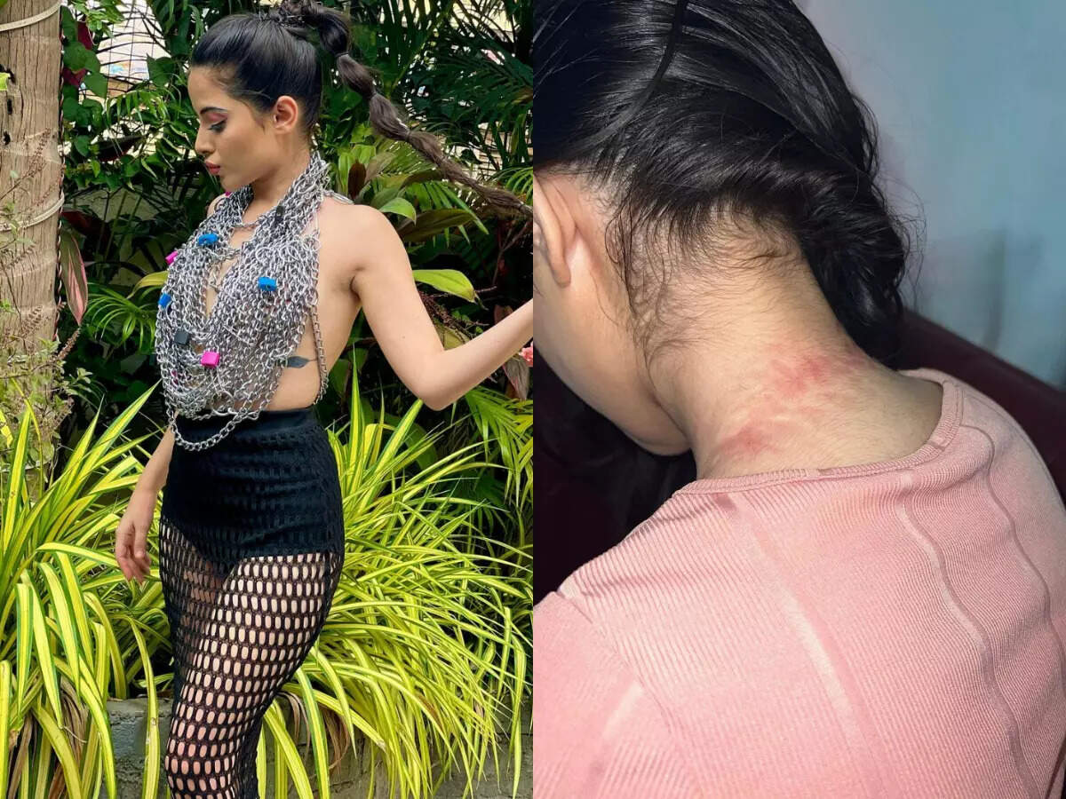 For the new look, Urfi sported a black bottom with mesh on it. Her backless top was made out of chains. She wore a high ponytail with the experimental look. However, the chains left a bruise on her neck. Urfi shared photos of it, proving that being a fashionista isn't easy and requires will and effort.