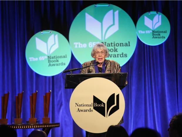 Honoured for her life's work at the National Book Awards in 2014, the author trumpeted “all the writers who were excluded from literature for so long — my fellow writers of fantasy and science fiction”.