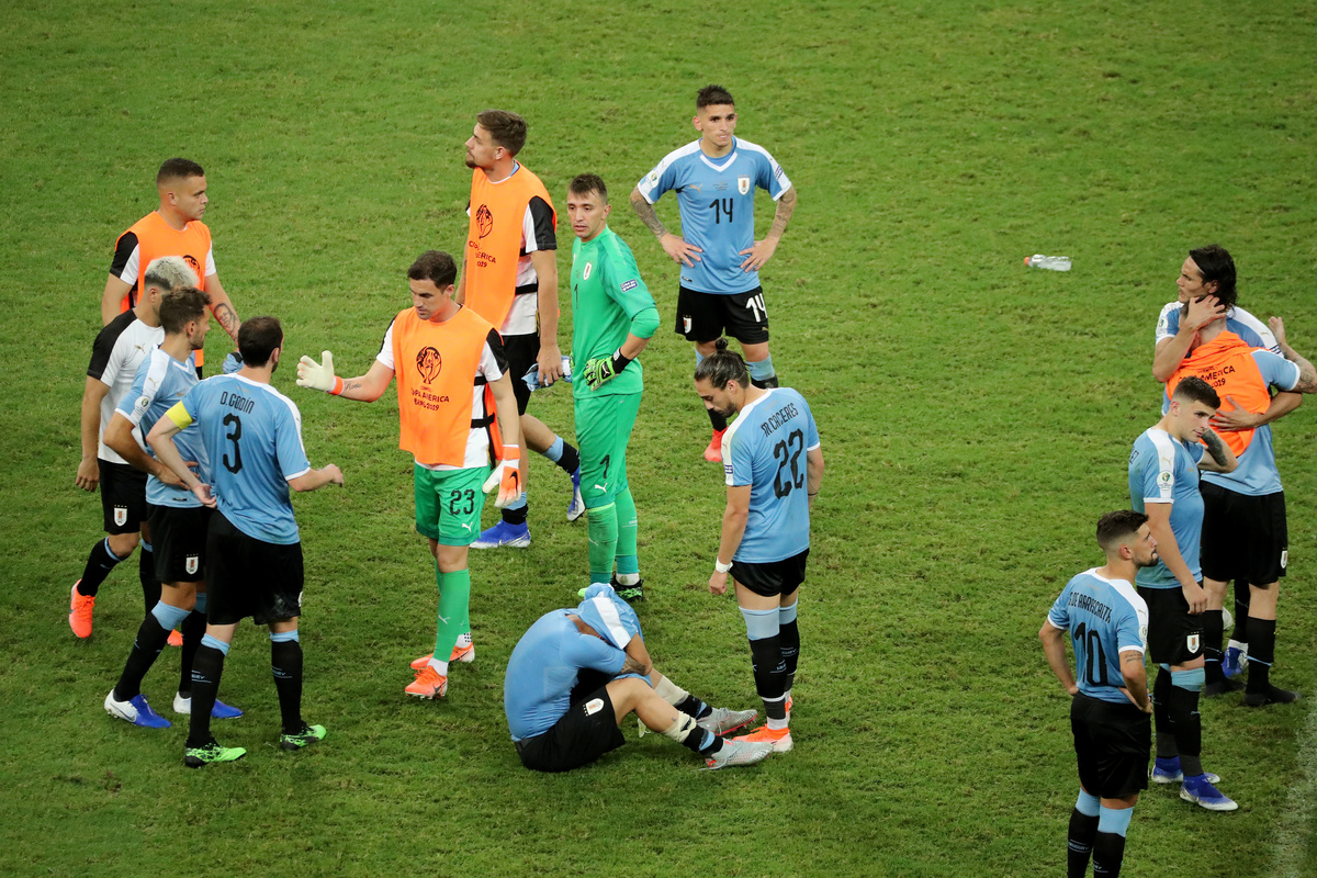 Suarez, who rushed back to full fitness after undergoing knee surgery in May in order to make it for the Copa, covered his face with his shirt and was consoled by team mates after the shootout defeat.