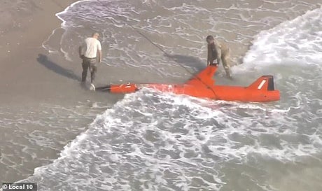 A 20 foot US Air Force drone washed up on Boynton Beach in Palm Beach Florida on Friday, surprising beach goers.