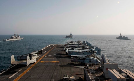 The Group Arabian Sea Warfare Exercise will see ships from the four countries conduct drills in the Arabian Sea and the Gulf of Oman. Ships involved include the French aircraft carrier Charles de Gaulle, as well as the amphibious assault ship USS Makin Island.