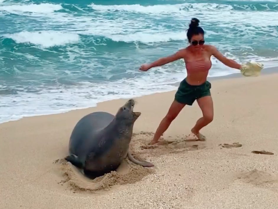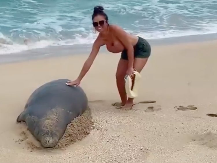 It’s a crime to touch or harass a Hawaiian monk seal under state and federal laws, with penalties of up to five years in prison and a $50,000 (£36,000) fine.
