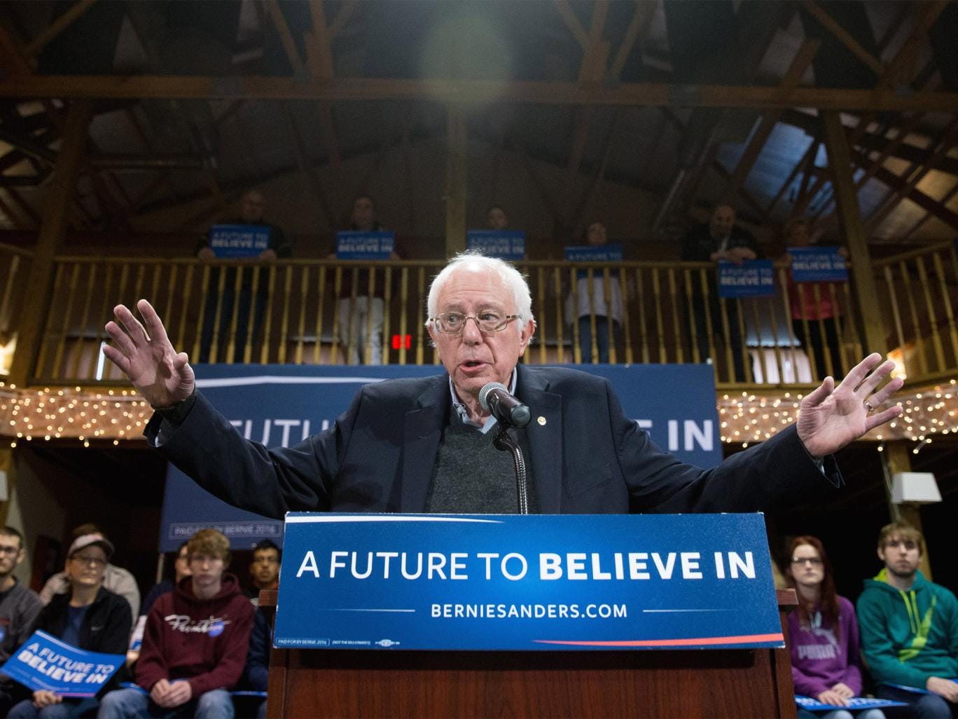 Standing at a podium in an open-rafter barn on the grounds of a Wild West museum in Fort Dodge, Iowa, Bernie Sanders admitted his bid to be the Democratic nominee for president appeared humble. “This is the campaign, nothing fancy, no ‘PowerPoints’, no marching band, this is it,” he said.