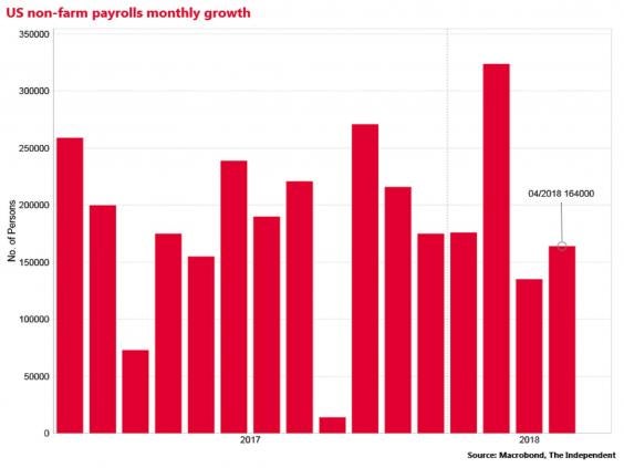 The US Bureau of Labour Statistics reported that there were 168,000 new non-farm payrolls added in the month, below Wall Street expectations of 192,000.