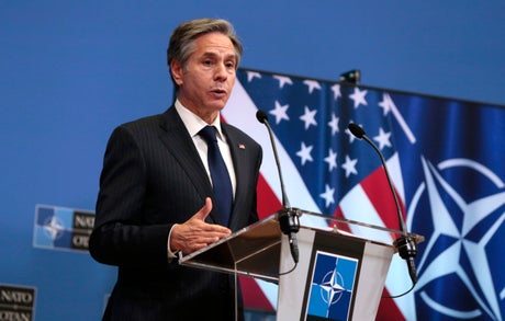 Blinken spoke after talks in Brussels with NATO foreign ministers. He will raise the tense state of relations with China in talks later Wednesday with European Commission President Ursula von der Leyen and EU foreign policy chief Josep Borrell