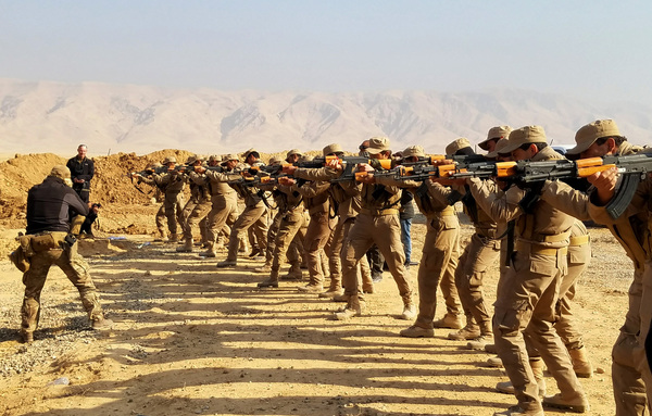U.S. and coalition trainers stood beside militia recruits on a firing range at a former Iraqi army facility south of Mosul on Sunday, offering tips on how to reload their rifles. The trainers said they have also been teaching the citizen soldiers how to stop battlefield bleeding and how to avoid and defuse bombs.