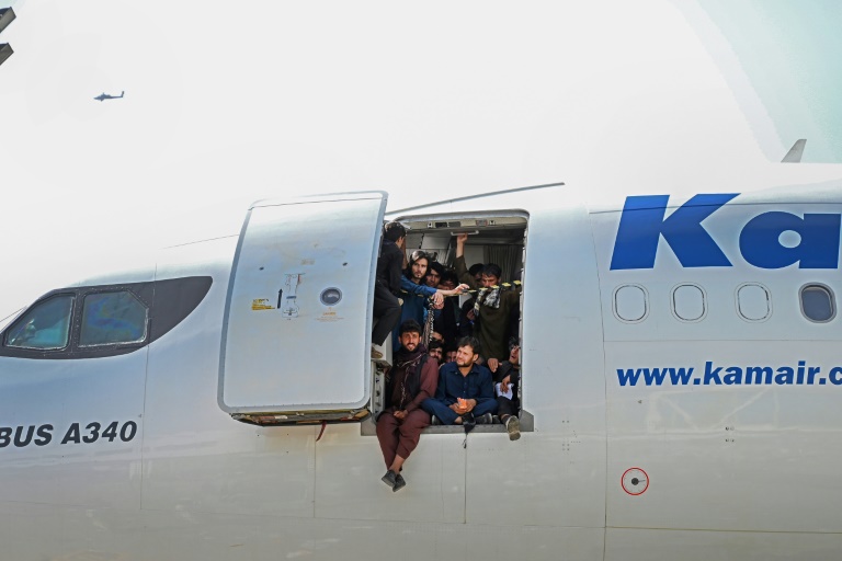 Videos posted on social networks showed scenes of panic and fear in Kabul, including crowds running next to a US military transport plane as it taxies to take off, with some trying to desperately cling to its sides.