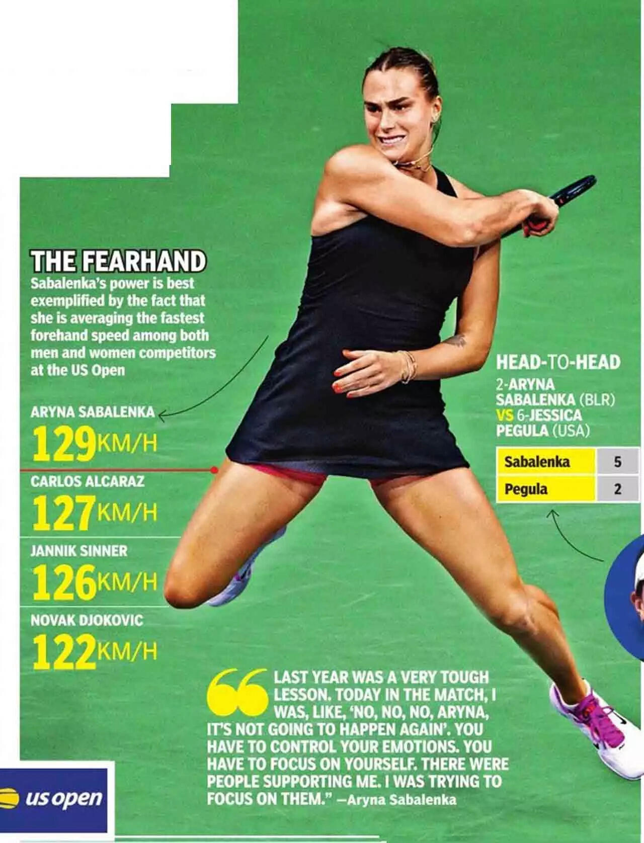 "Last year was a very tough lesson. Today in the match, I was, like, 'no, no, no, Aryna, it's not going to happen again'. You have to control your emotions. You have to focus on yourself," the statuesque Belarusian said, adding, "There were people supporting me. I was trying to focus on them. There is your team. There is your family."