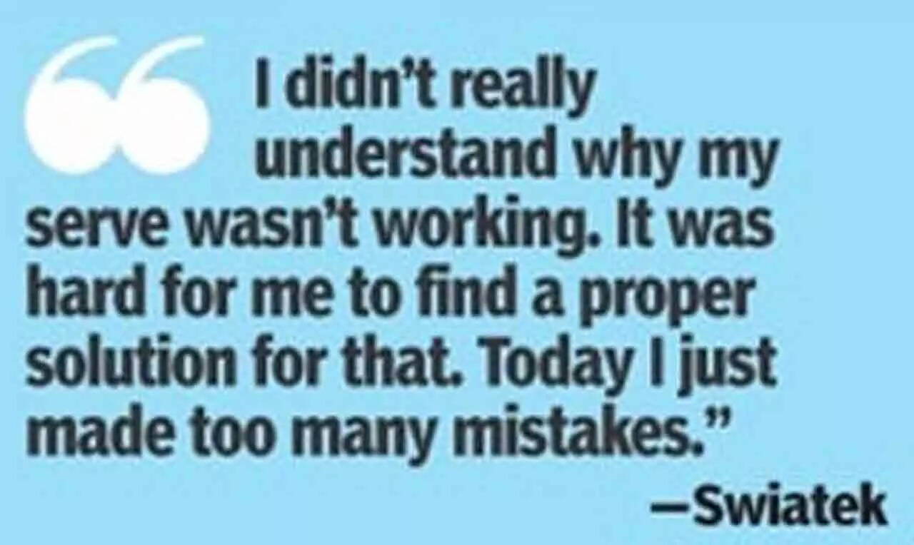 Swiatek, whose serve had been the talking point earlier in the season, had not faced a breakpoint in her last three matches, but could not find her first serve in the set. She served at just 36 percent in the opening set while coming up with 41 unforced errors in the match.