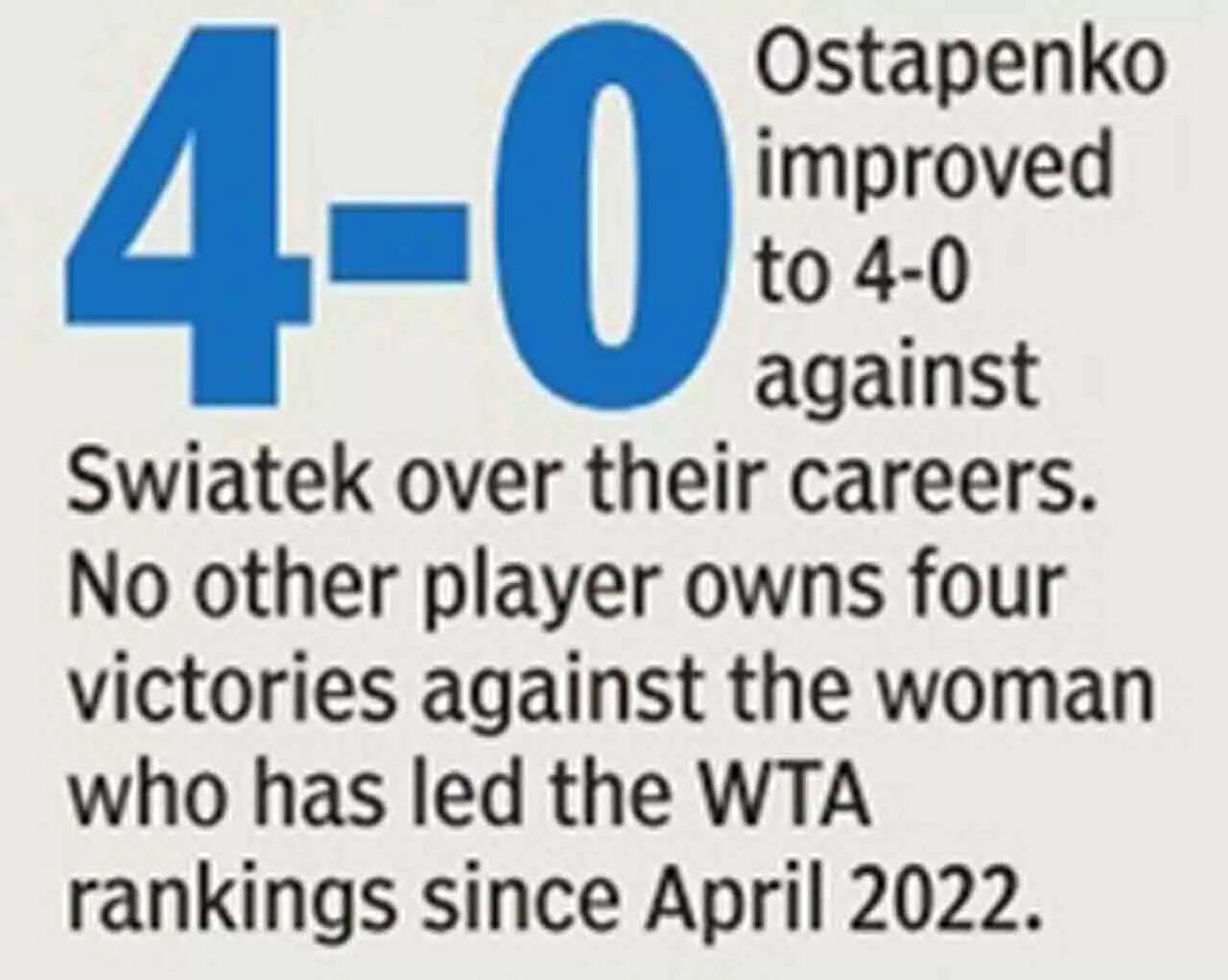 Swiatek is one of the fastest movers on the court, but the Pole enjoys taking her time to play her shots. That's just what Ostapenko's play doesn't afford opponents. The same for Sabalenka and Elina Rybakina, all big strikers of the ball against whom Swiatek struggles.