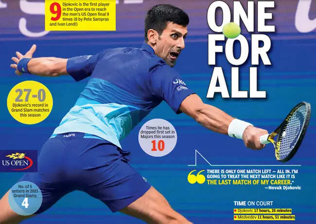 NEW YORK: Hear the thud? The smash, that crash. Novak Djokovic is banging on the hard-wearing doors of tennis history. The world No.1 is just one win short of a calendar Grand Slam -- last achieved by a man back in the season the laser printer was born, ironically -- and a record-breaking 21st major title.