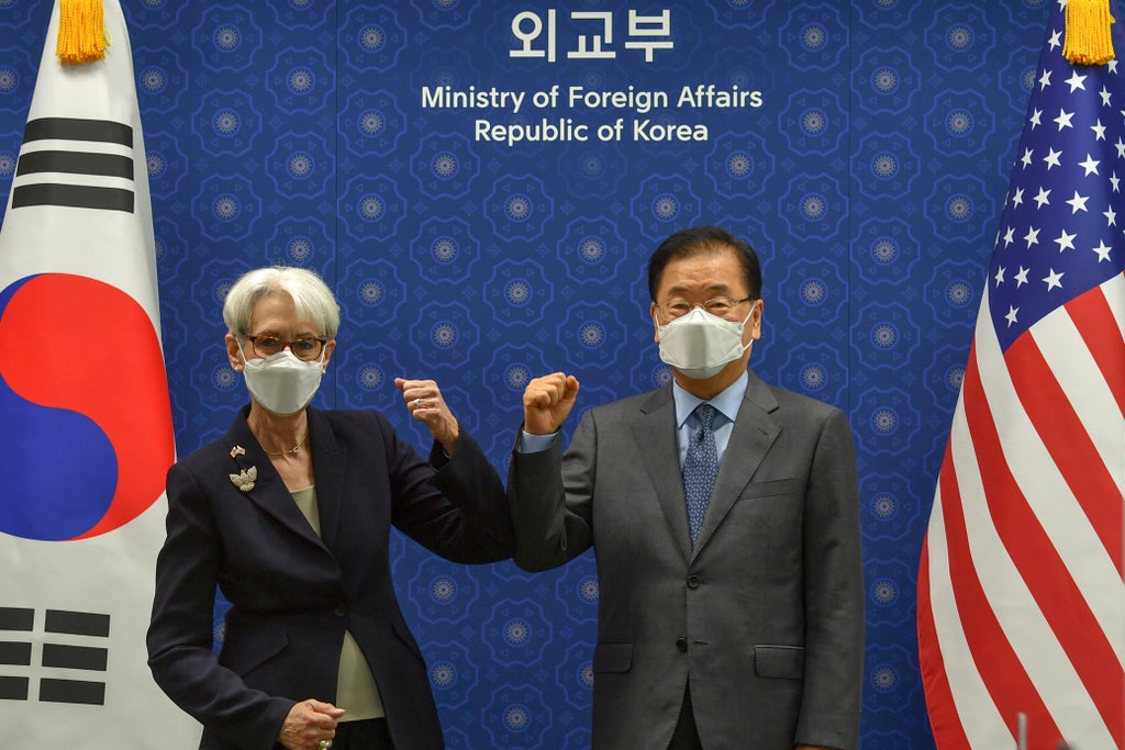 Chung asked Sherman to strive to bolster the South Korean-U.S. alliance. Sherman responded she would do so, saying the alliance is key to peace, security and prosperity in the Indo-Pacific region and Northeast Asia, according to the statement.