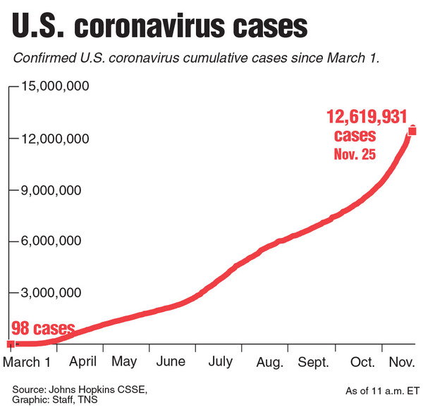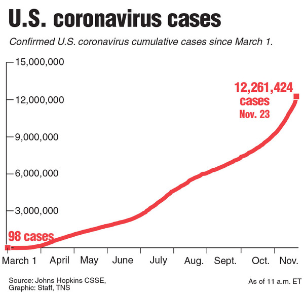 The virus has spread rapidly in recent weeks, as the country hit 10 million cases Nov. 9 and the 11 million mark Nov. 15.