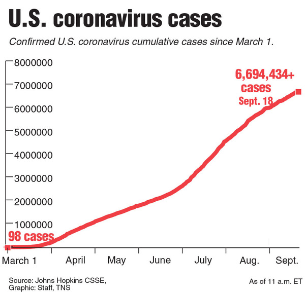 Complicating the picture is a decline in testing. The U.S. was performing about 5.6 million screenings a week in late July, but in the seven days through Sept. 12 did only about 4.6 million, according to data from the COVID Tracking Project. Unevenness in testing has dogged efforts to make sense of the virus's path.