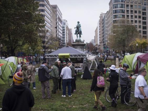 Organizers said that about 50 people slept in tents in McPherson Square on Monday and Tuesday as part of the rally. The participants outfitted McPherson Square for the rally, selling cannabis products, giving away samples and displaying photographs of veterans using marijuana.