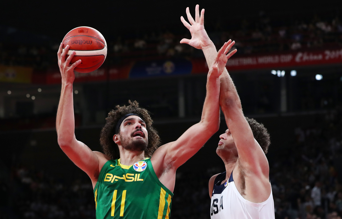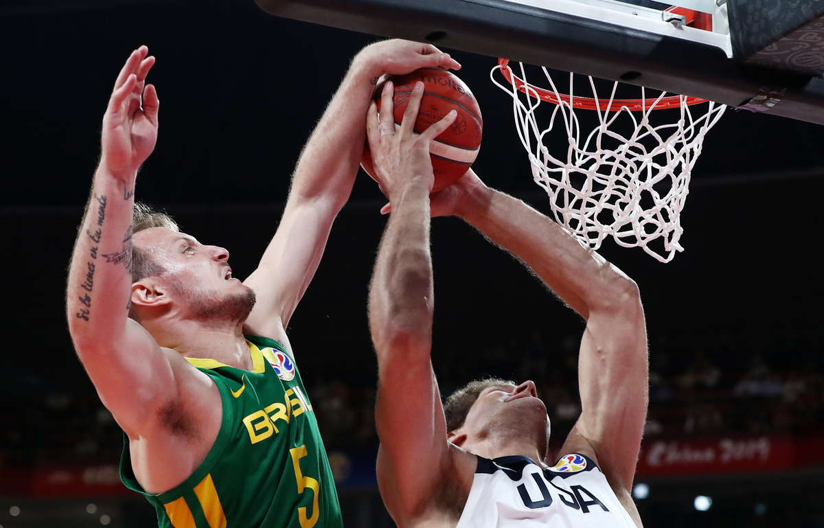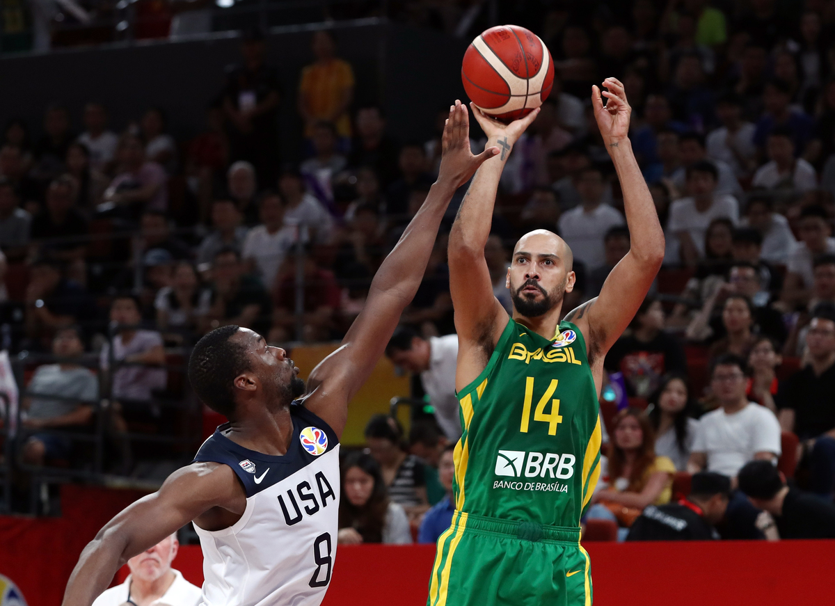 Brazil held their own against the more athletic Americans in the opening half and were level 23-23 at the end of the first quarter before the champions engineered a 43-38 halftime lead.
