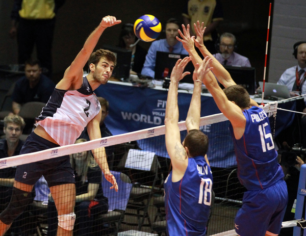 Russia led 7-4 before USA tied it 7 after a block from Maxwell Holt, who was on the 2012 team that went to London. The Russians went up no more than three points, including 19-16, but again the Americans rallied to tie it at 22-22 on a kill from Micah Christenson.