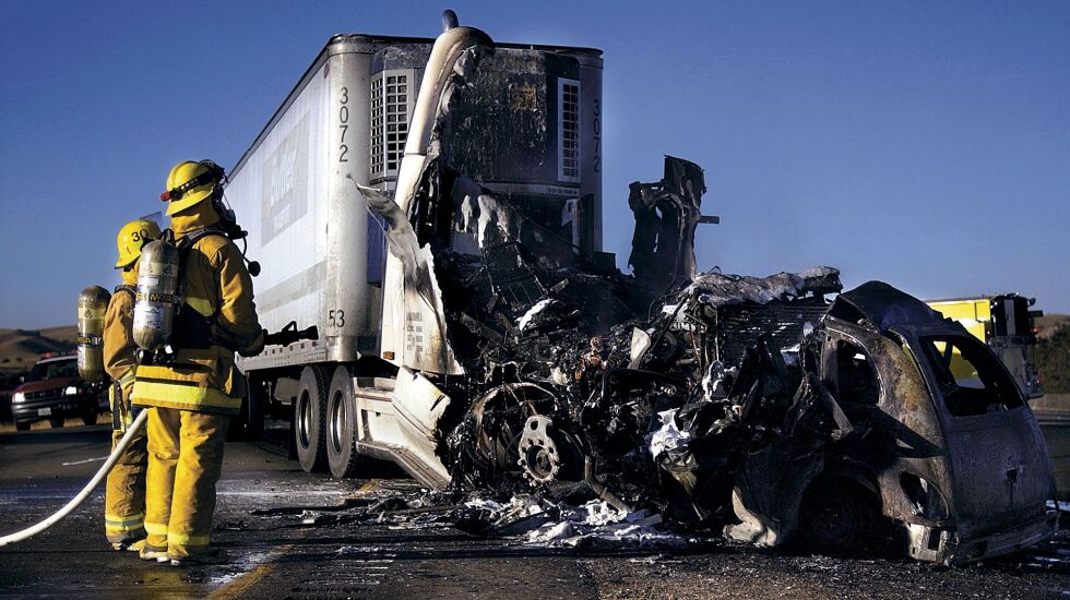 The car apparently began leaking steering fluid, then caught fire. Having lost the ability to steer, the sisters collided head-on with a semitractor-trailer truck.