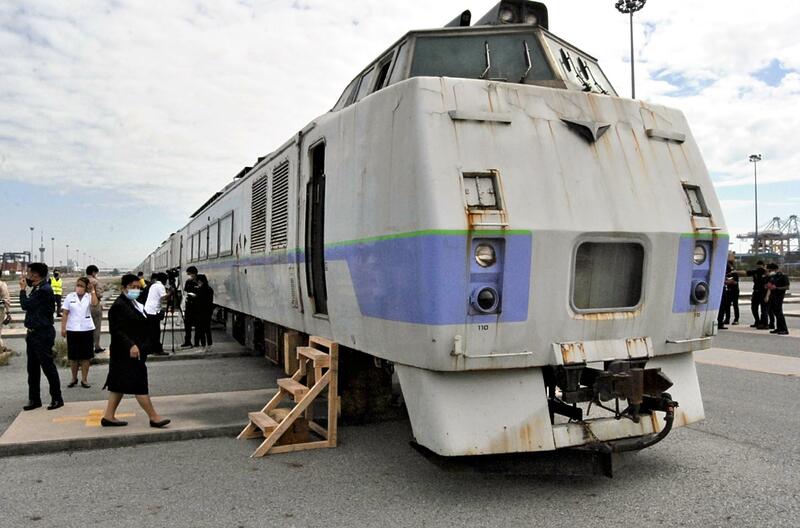 BANGKOK -- The State Railway of Thailand (SRT) on Monday unveiled to the media 17 used railroad cars acquired from Hokkaido Railway Co. (JR Hokkaido) at the Laem Chabang Port in central Thailand.