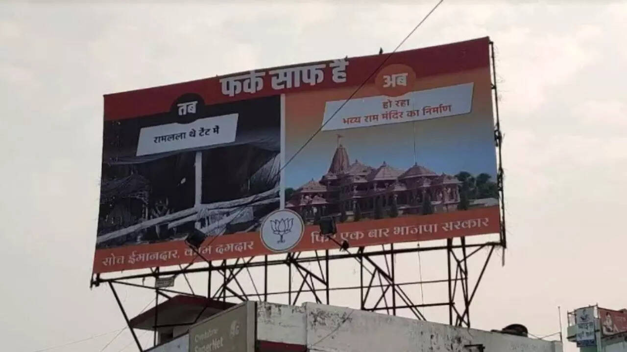 PRAYAGRAJ: Ahead of the 2022 Uttar Pradesh assembly elections due early next year, a hoarding — installed by the Bharatiya Janata Party (BJP) leaders claiming to depict the condition of Ramlala in Ayodhya before and after the BJP came to power in the state — has set the ball rolling for hoarding war that parties might indulge in.