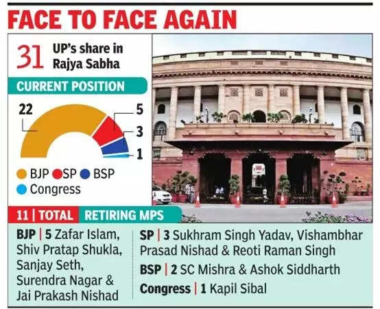 LUCKNOW: After a high-decibel bipolar contest in UP polls, the BJP and SP look set to cross swords for elections to 11 Rajya Sabha seats which will fall vacant in UP in July next. Of the 11 retiring MPs, five are be of BJP, three of SP, two of BSP and one of the Congress.