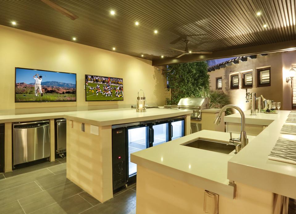 Indio, CA: Whether you're planning an annual retreat, family vacation or special celebration, Gentle Breeze is the ultimate destination. Whip up culinary creations in the stunning outdoor kitchen, complete with a gas grill, cooktop, griddle, warming tray, multiple refrigerators, dishwasher, ice-maker, five-tap keg system (additional fee), sink, cocktail station and two 4K outdoor smart TVs.