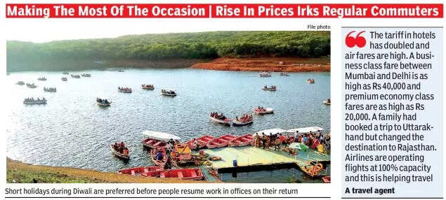 “In Pune, people generally prefer to holiday after Laxmi Puja and Padva. Now, many clients have booked their trips during the Diwali week. Queries and bookings have increased and while some are ready to spend some days in nearby locations like Nashik, Lonavla, Mahabaleshwar, Konkan, many have opted to go to Rajasthan, Gujarat, Karnataka and Tamil Nadu. There are several queries and bookings too for international destinations like Dubai, Maldives, Sri Lanka, Austria and Turkey. Also, more people are contacting travel agents for their bookings rather than doing it themselves or booking via a website,” Nileshh Bhansali, a travel agent and director of Travel Agents Association of Pune, told TOI.