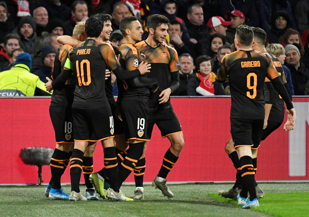 AMSTERDAM (Reuters) - Valencia's Rodrigo scored the game's only goal as they upset hosts Ajax Amsterdam 1-0 on Tuesday to finish top of Champions League Group H and eliminate the Dutch title winners from this season's competition.