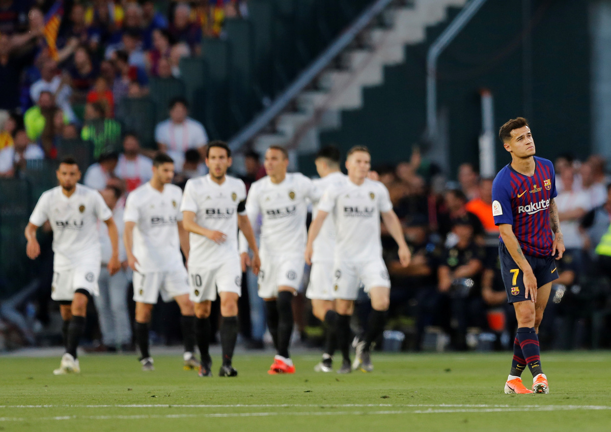 SEVILLE, Spain (Reuters) - Valencia beat Barcelona 2-1 to win the Copa del Rey on Saturday, ending the Spanish champions' four-year winning streak in the competition and denying them a domestic double.